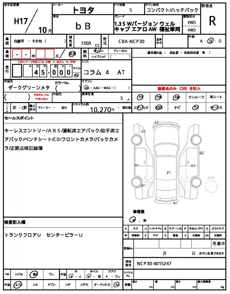 VIN/Serial No. | NCP30-4015247 |