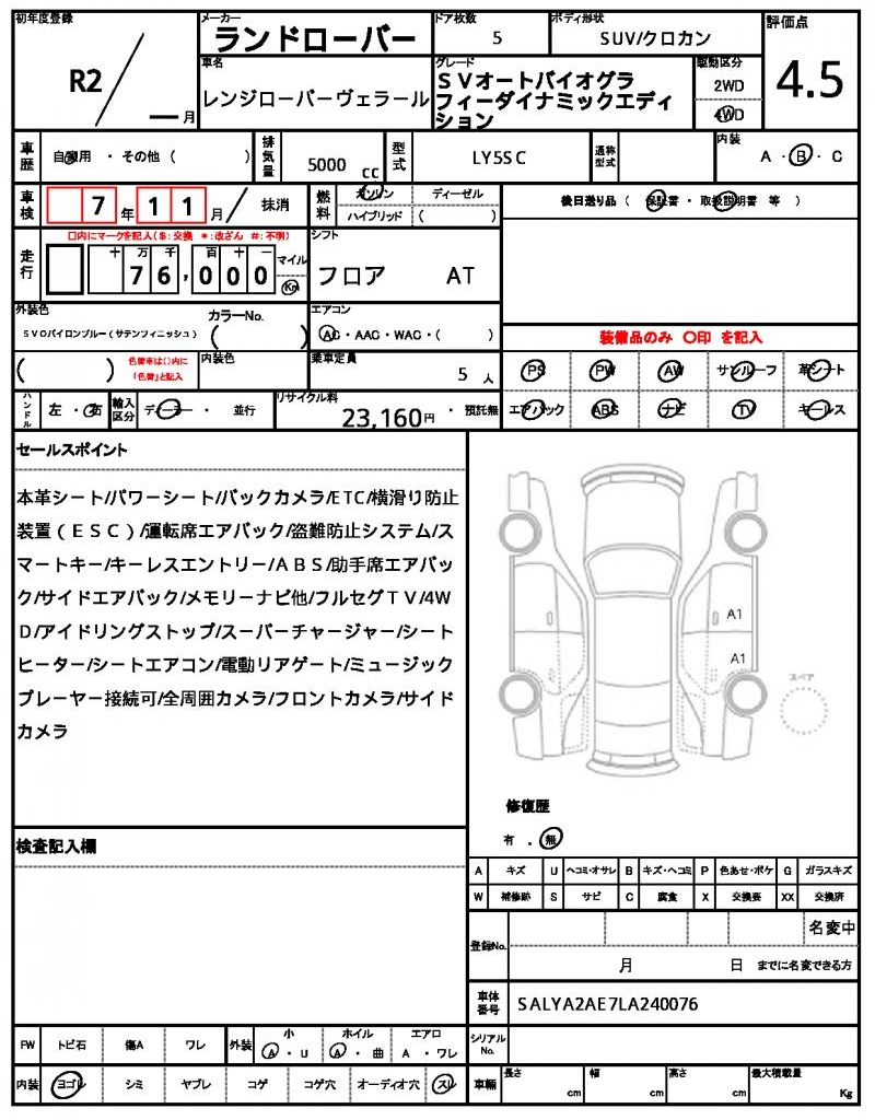 VIN/Serial No. | SALYA2AE7LA240076 |
