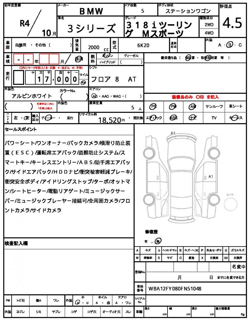 VIN/Serial No. | WBA12FY080FN51048 |
