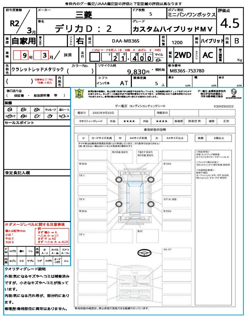 | Odometer | 21400km |