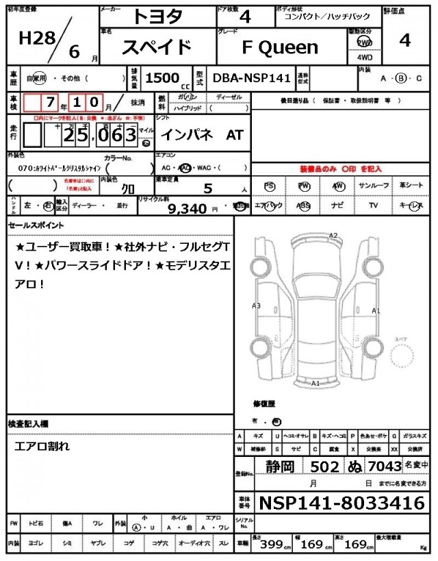 | VIN/Serial No. | NSP141-8033416 |