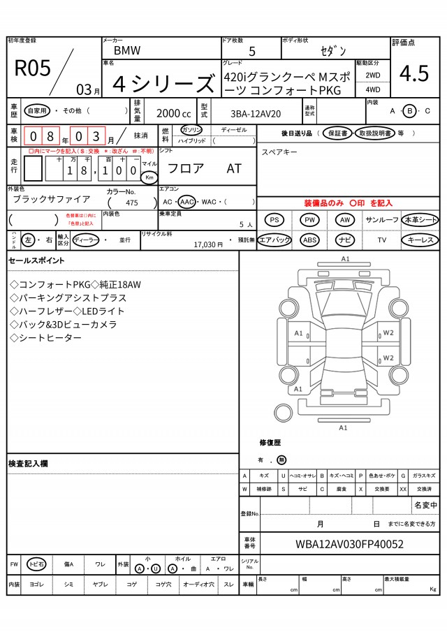 | VIN/Serial No. | WBA12AV030FP40052 |
