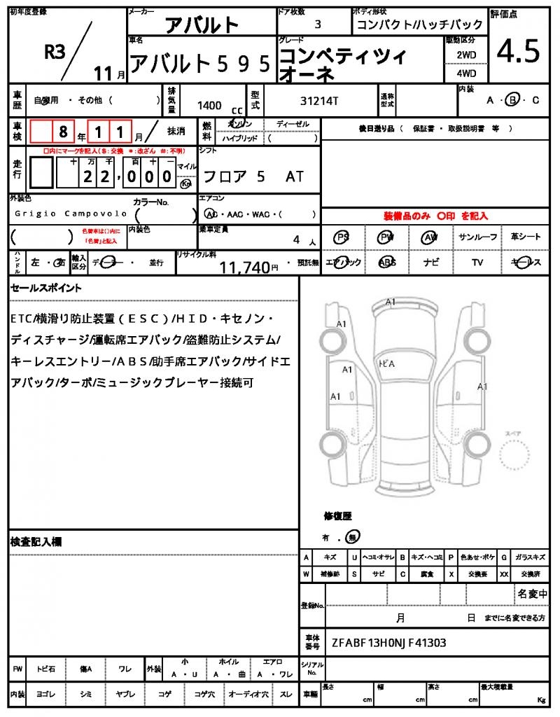 | VIN/Serial No. | ZFABF13H0NJF41303 |
