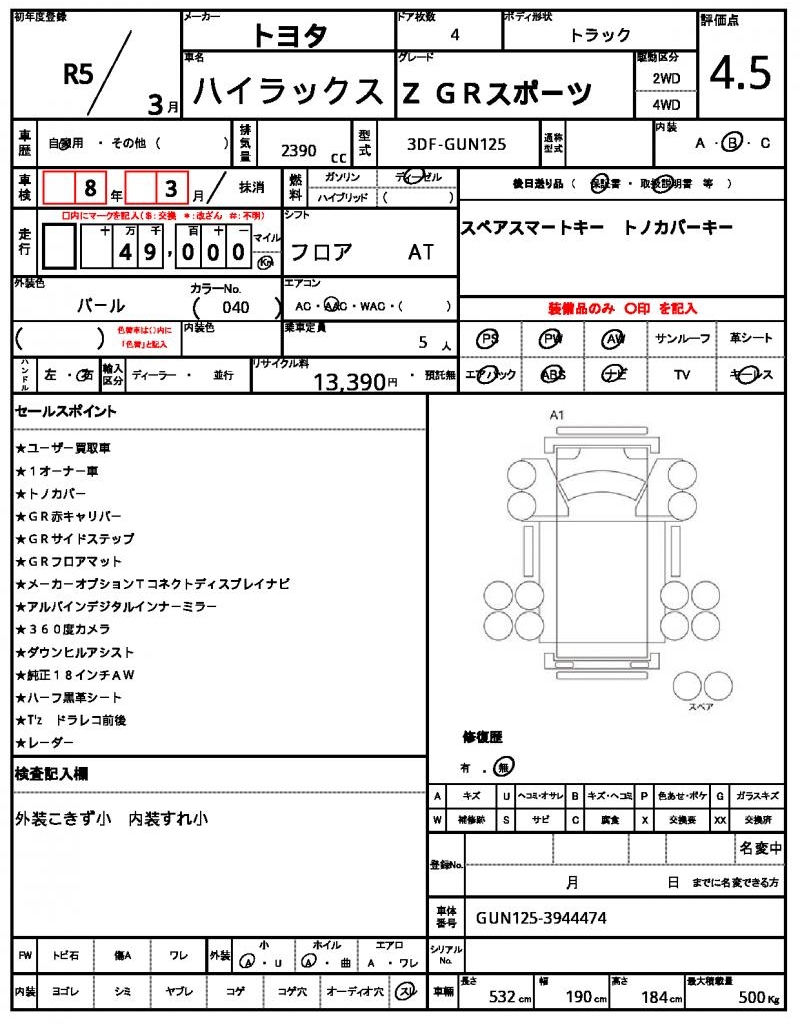 VIN/Serial No. | GUN125-3944474 |