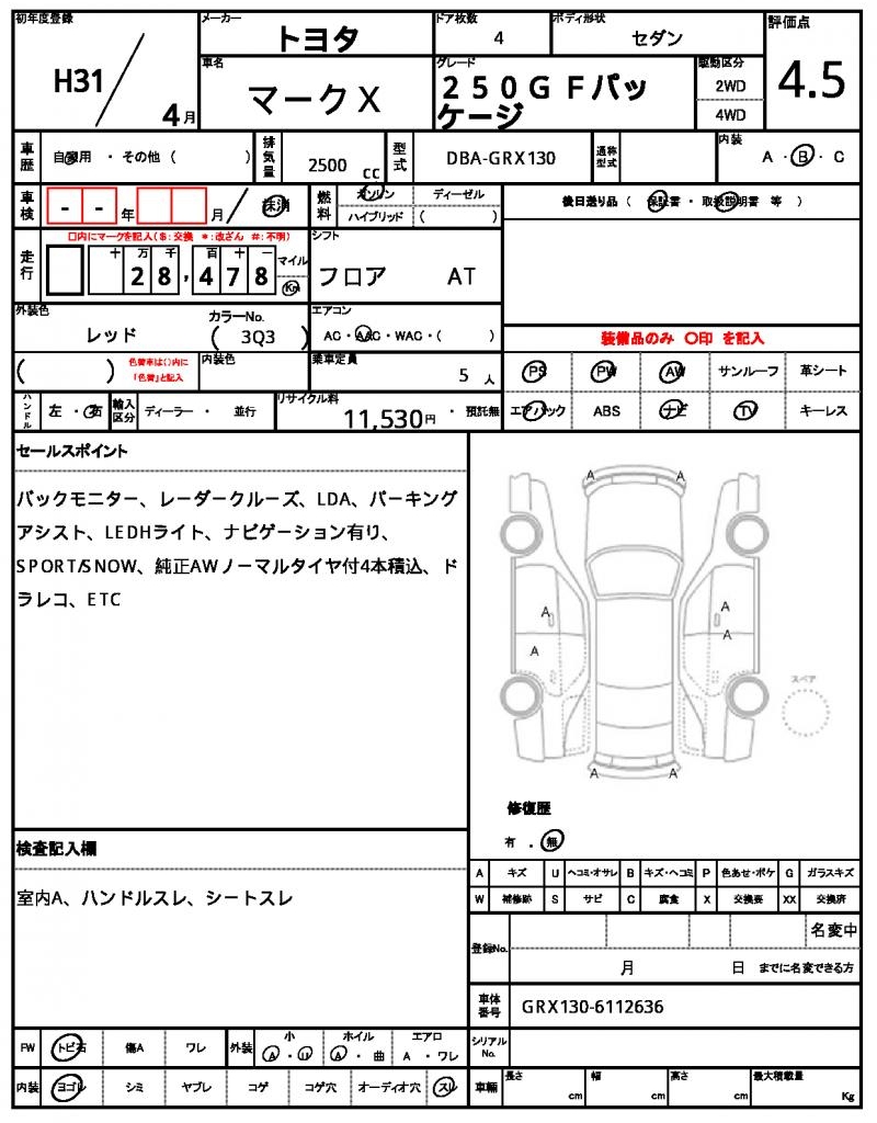 Model code | DBA-GRX130 |
