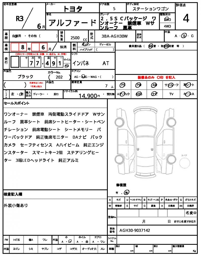 VIN/Serial No. | AGH30-9037142 |