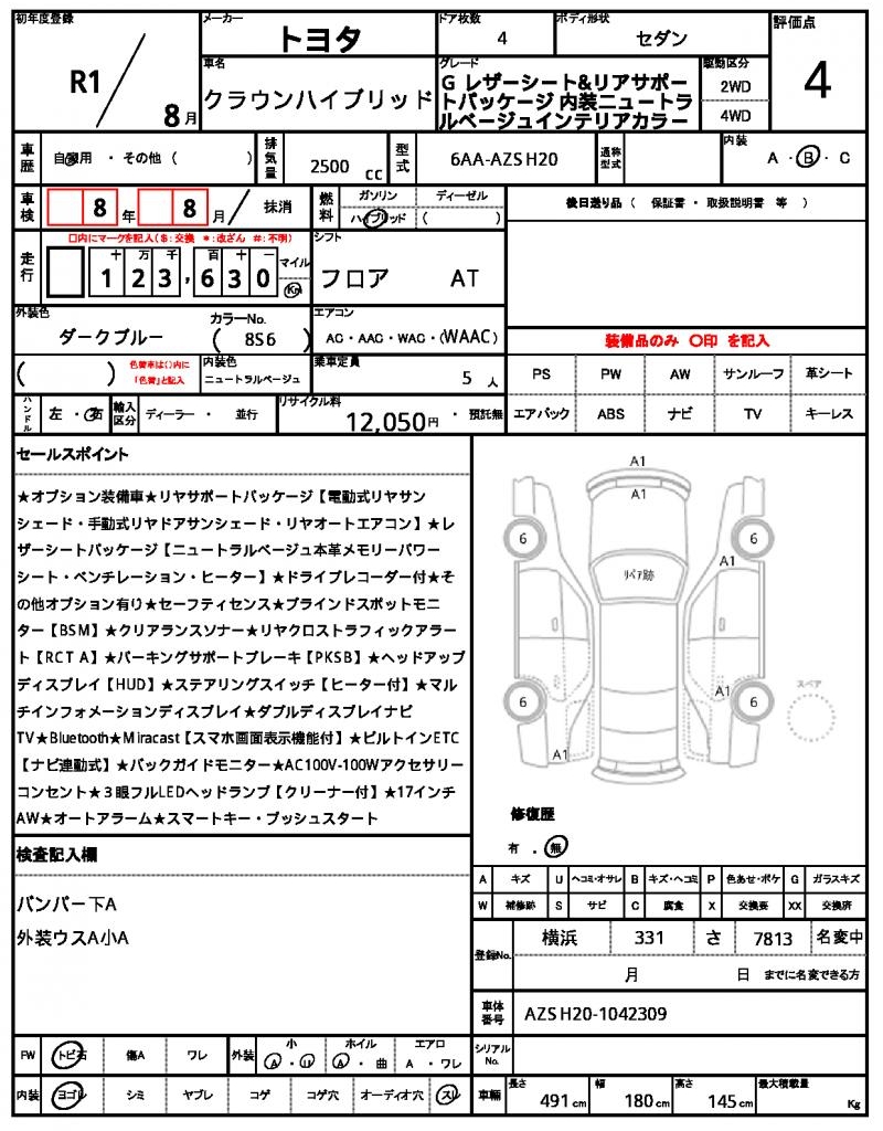 | VIN/Serial No. | AZSH20-1042309 |