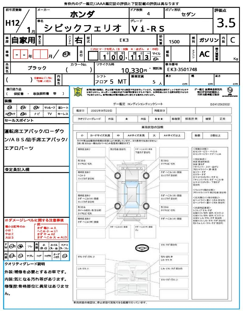 | VIN/Serial No. | EK3-3501748 |