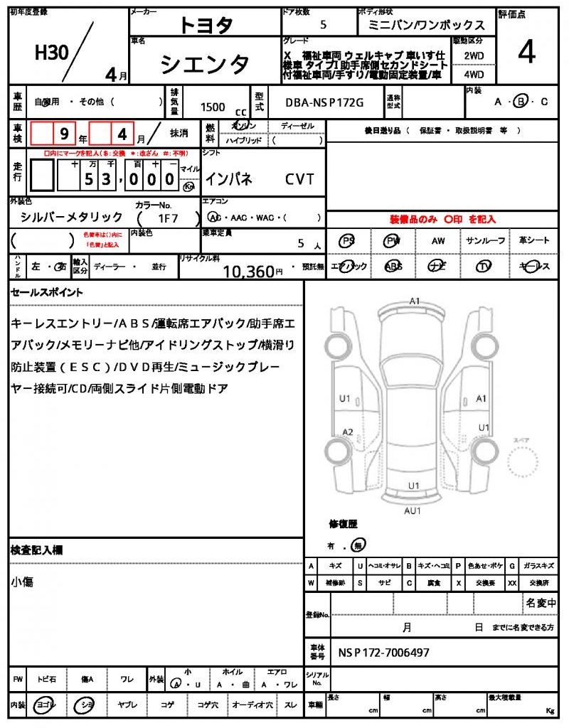 | VIN/Serial No. | NSP172-7006497 |