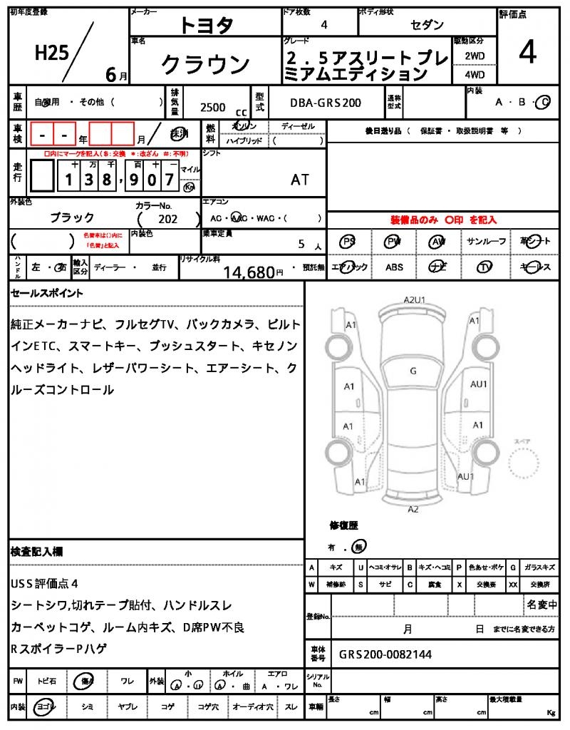 | VIN/Serial No. | GRS200-0082144 |