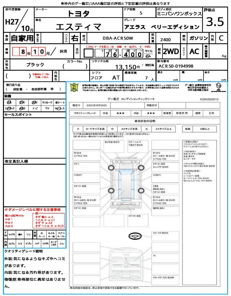| Odometer | 76400km |