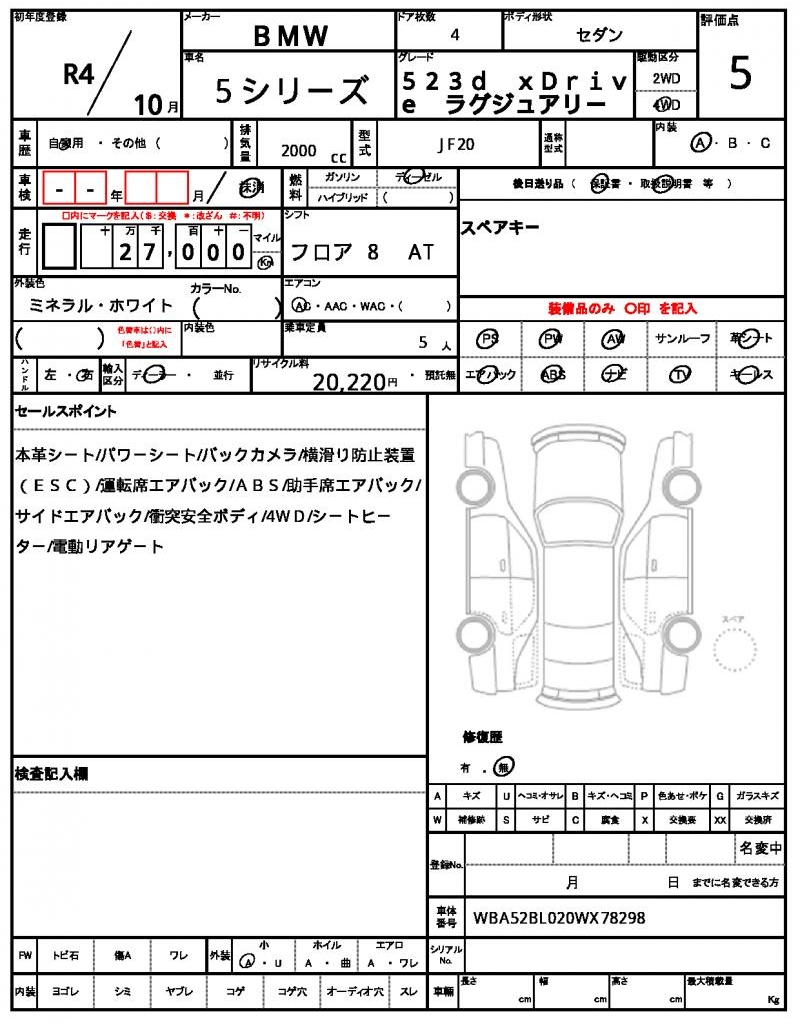 | VIN/Serial No. | WBA52BL020WX78298 |