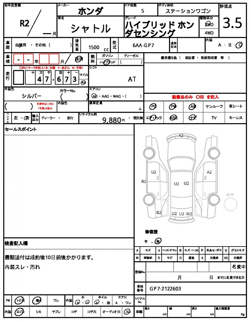 | VIN/Serial No. | GP7-2122603 |