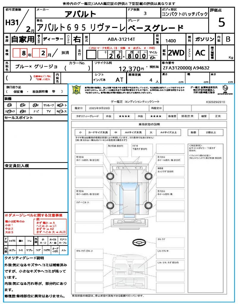 | VIN/Serial No. | ZFA3120000JA94632 |