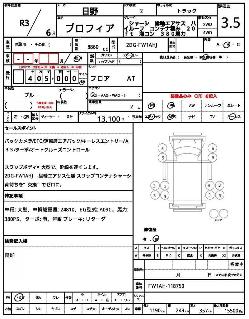 | VIN/Serial No. | FW1AH-118750 |