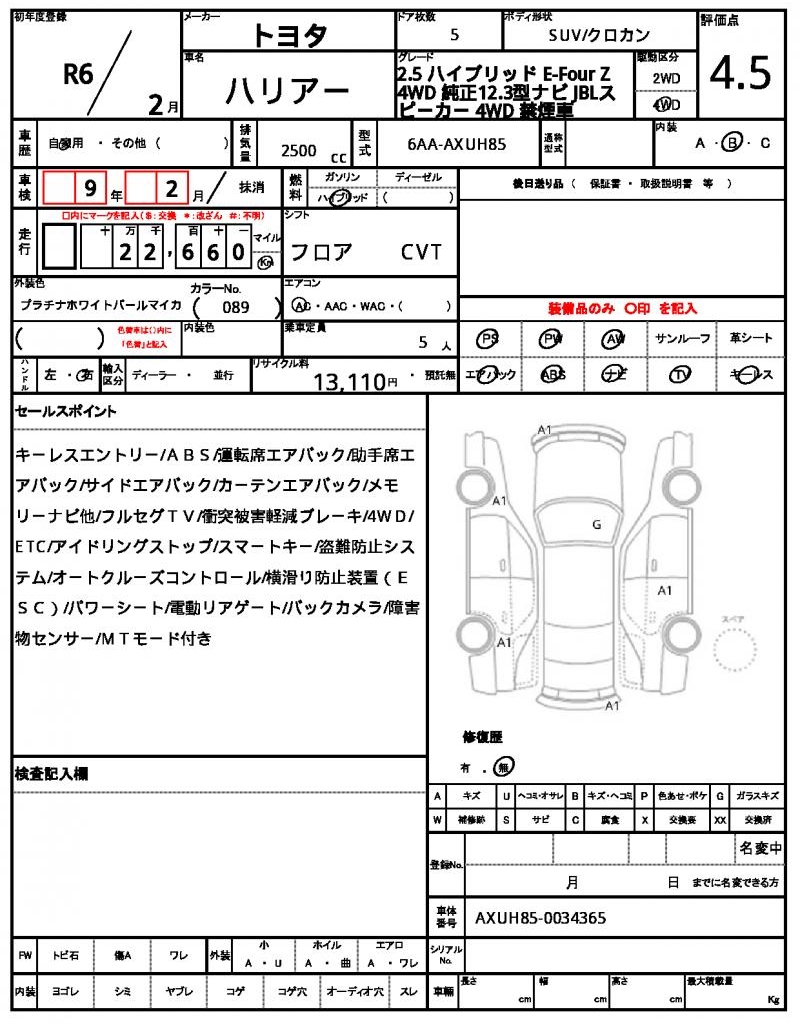 | VIN/Serial No. | AXUH85-0034365 |