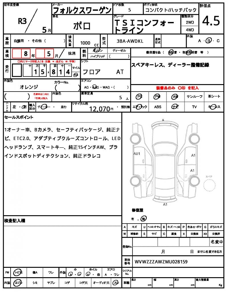 | VIN/Serial No. | WVWZZZAWZMU028159 |