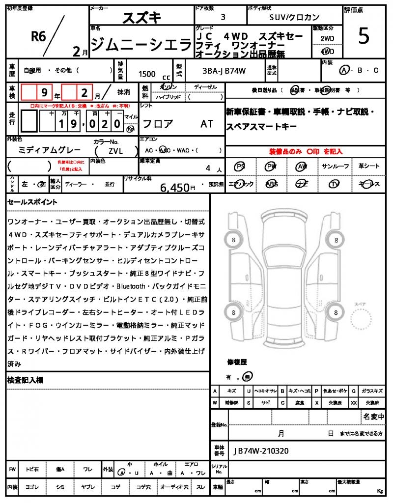 | VIN/Serial No. | JB74W-210320 |