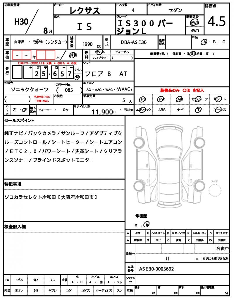 | VIN/Serial No. | ASE30-0005692 |