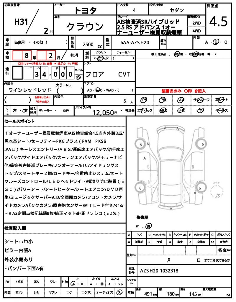 | VIN/Serial No. | AZSH20-1032318 |