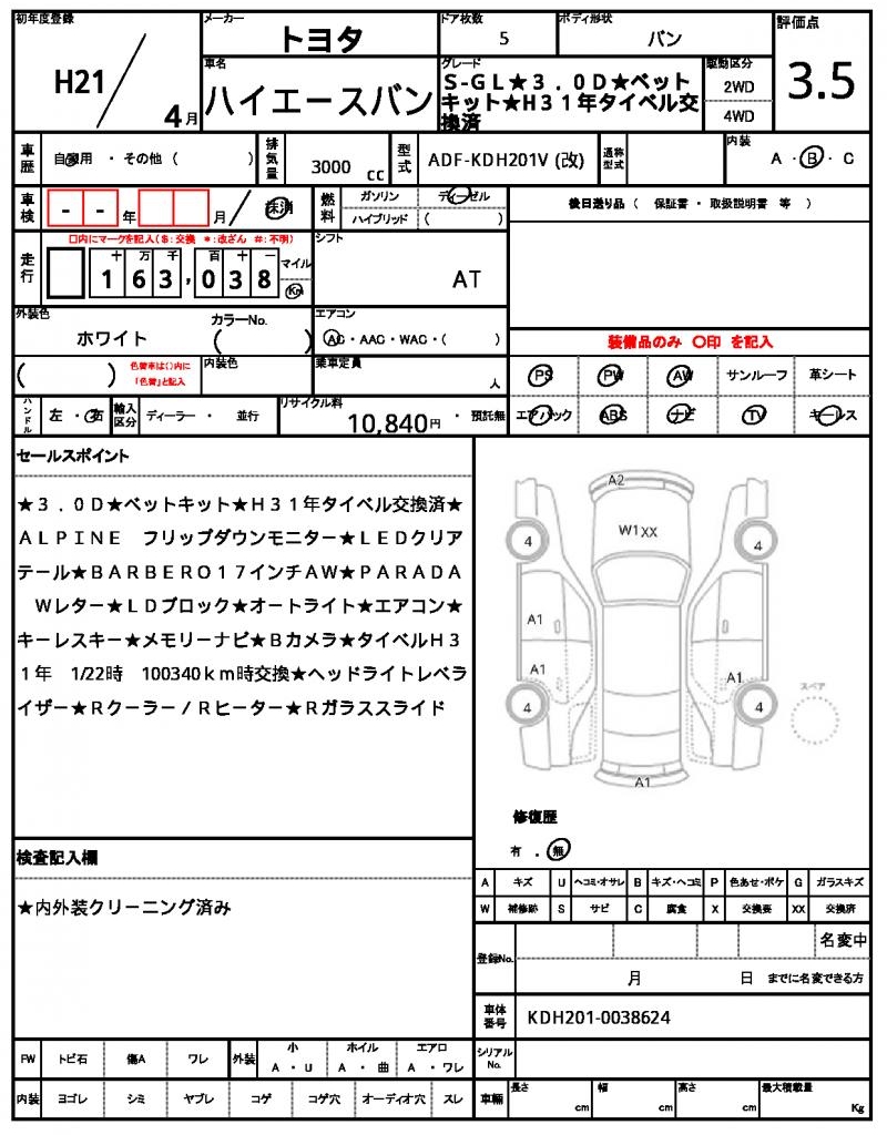 | VIN/Serial No. | KDH201-0038624 |