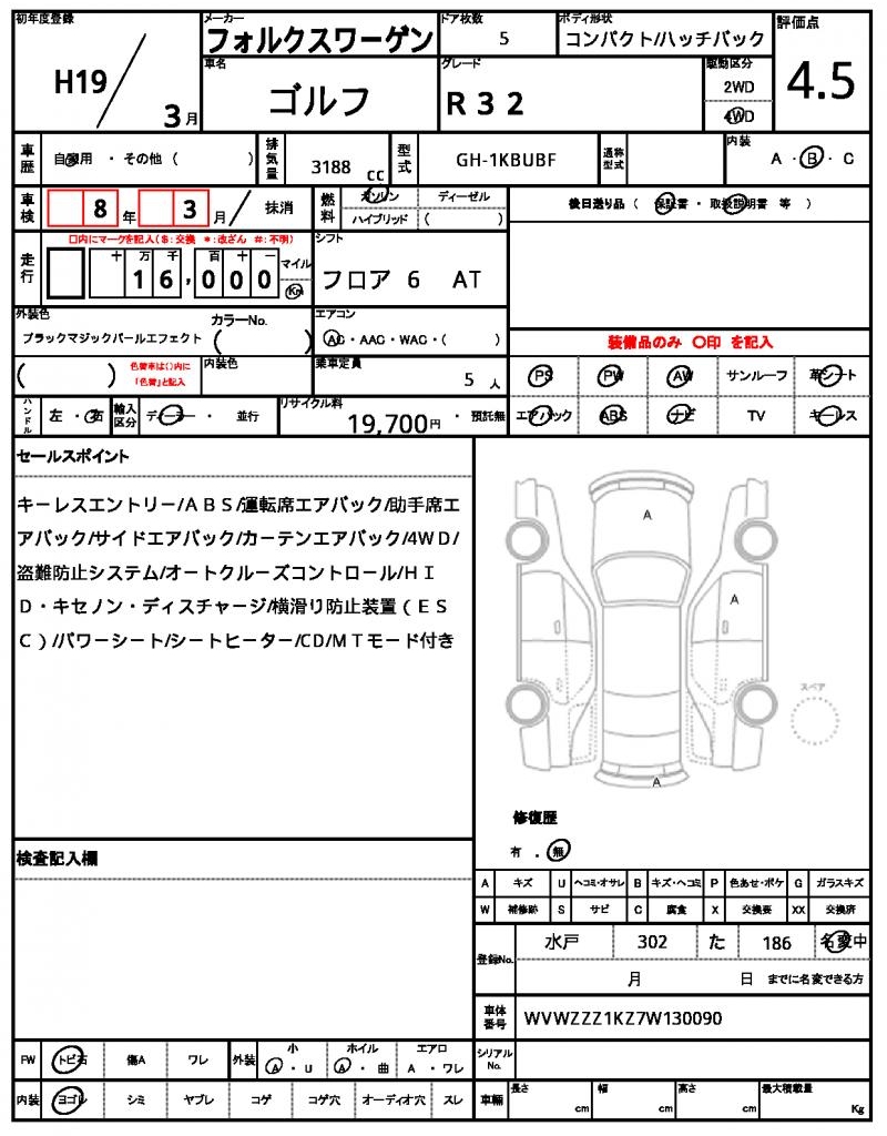 | VIN/Serial No. | WVWZZZ1KZ7W130090 |