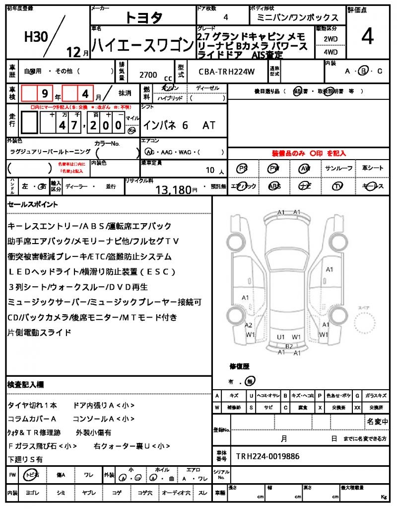 | VIN/Serial No. | TRH224-0019886 |