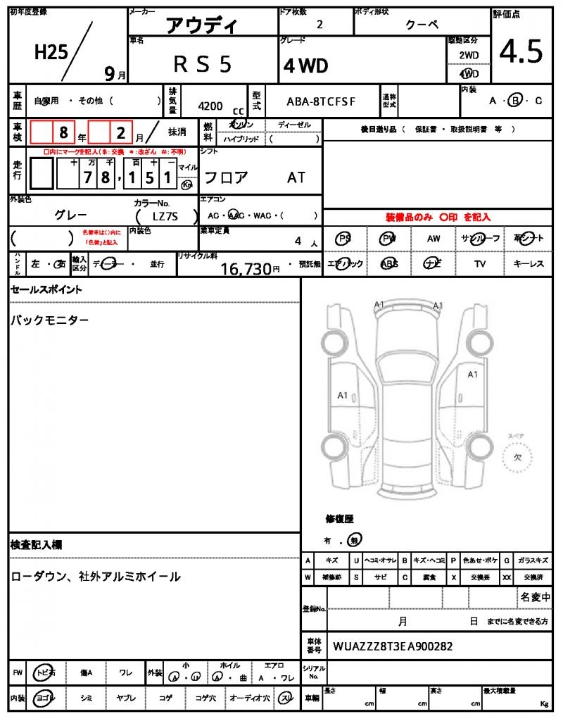 | VIN/Serial No. | WUAZZZ8T3EA900282 |