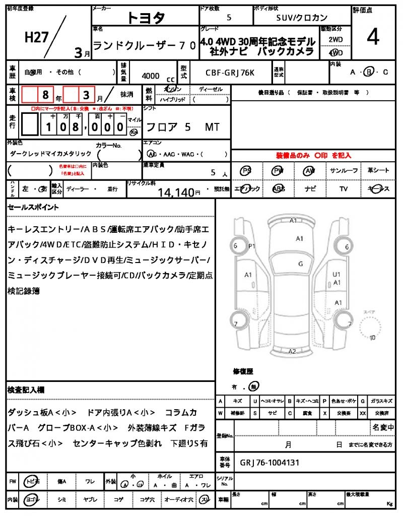 | VIN/Serial No. | GRJ76-1004131 |