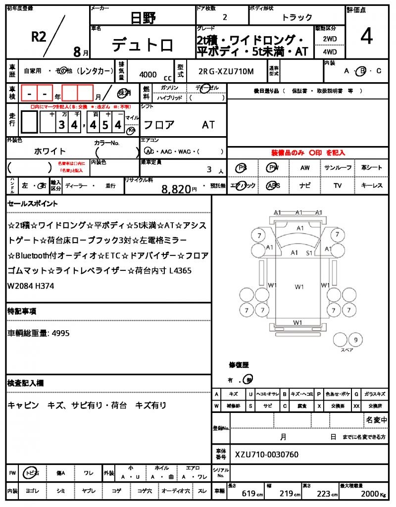 | VIN/Serial No. | XZU710-0030760 |