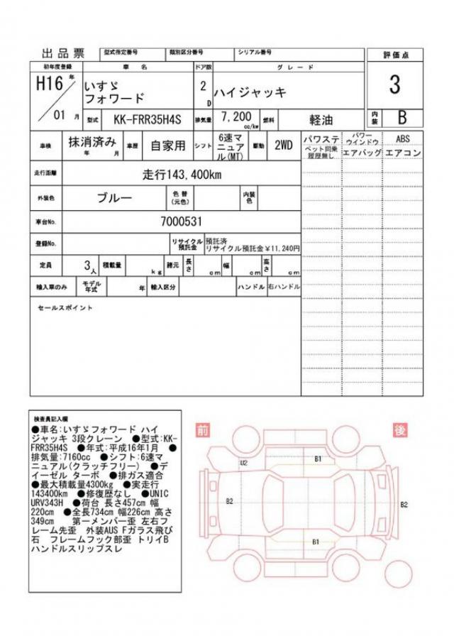 | VIN/Serial No. | FRR35H4S-7000531 |
