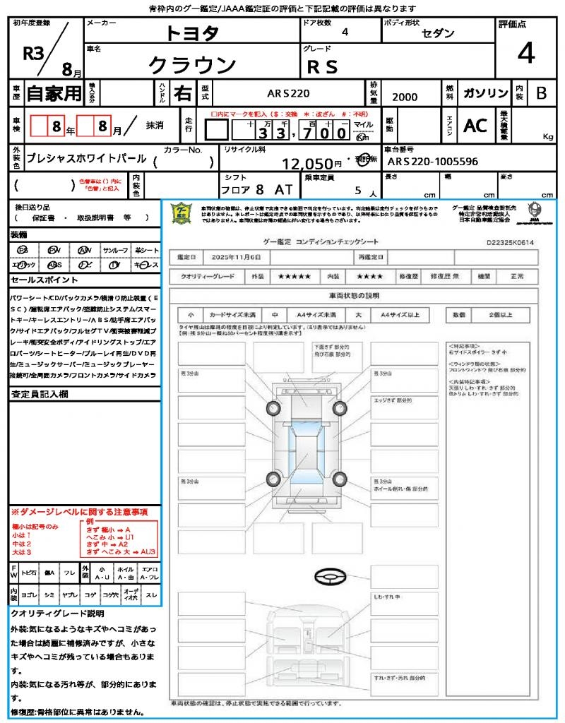 | VIN/Serial No. | ARS220-1005596 |