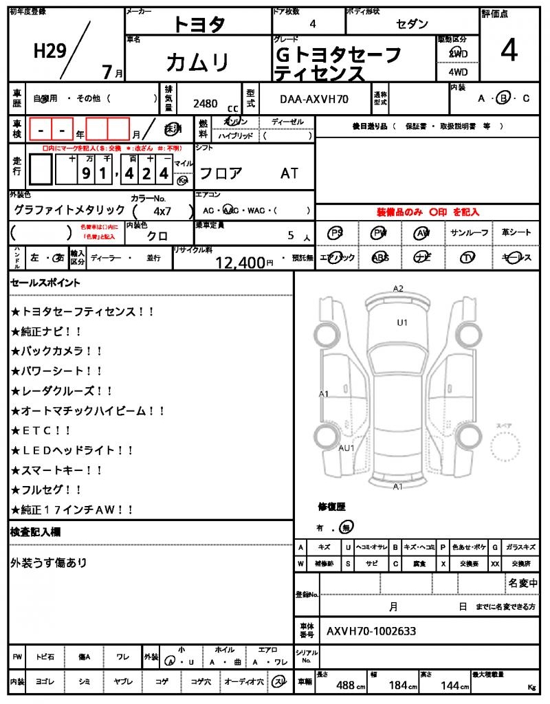 | VIN/Serial No. | AXVH70-1002633 |