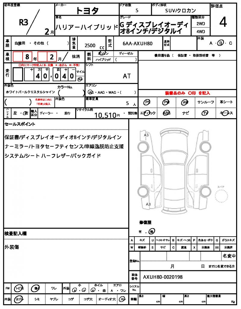 | VIN/Serial No. | AXUH80-0020198 |