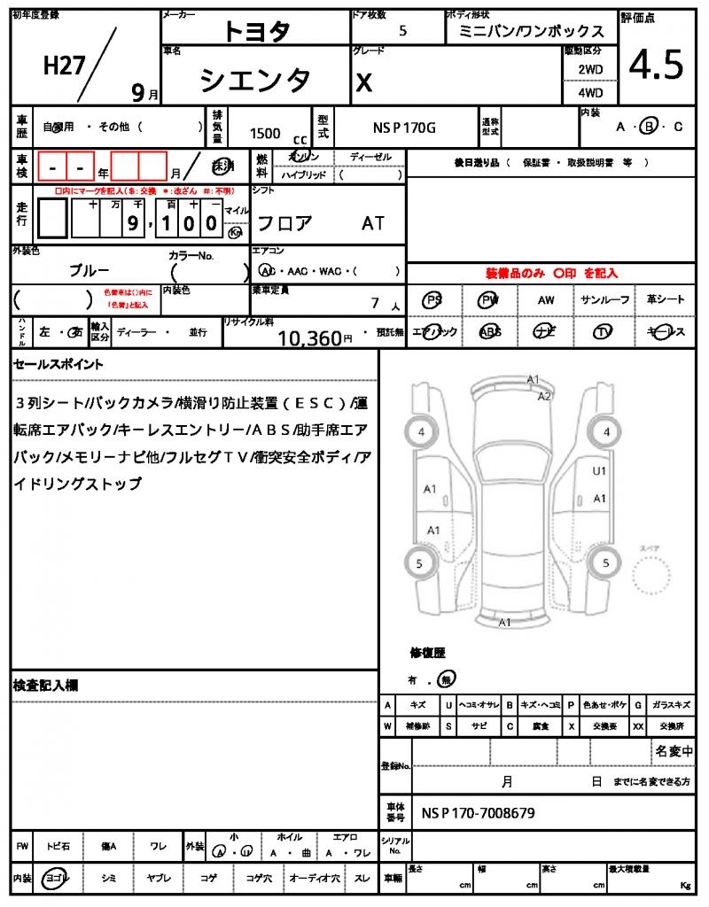 | VIN/Serial No. | NSP170-7008679 |