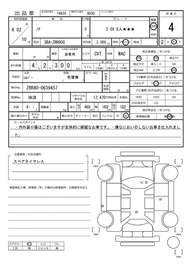 | Model code | 3BA-ZRR80G |
