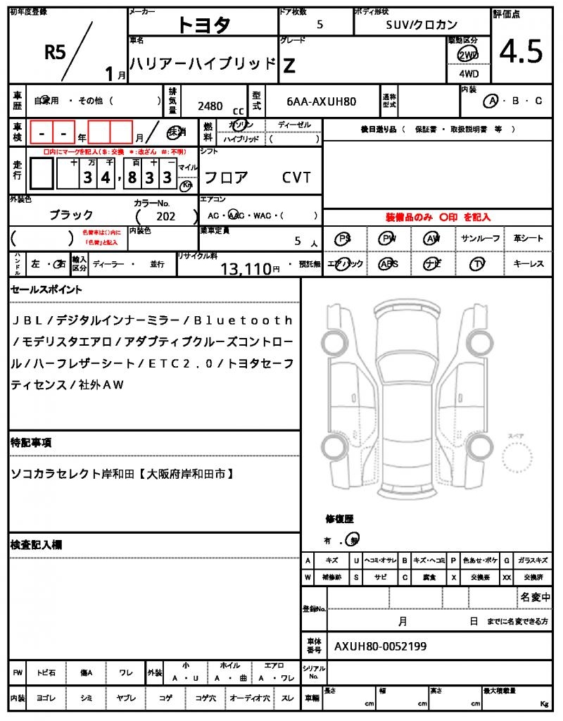 | VIN/Serial No. | AXUH80-0052199 |