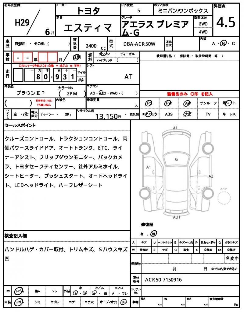 | VIN/Serial No. | ACR50-7150916 |