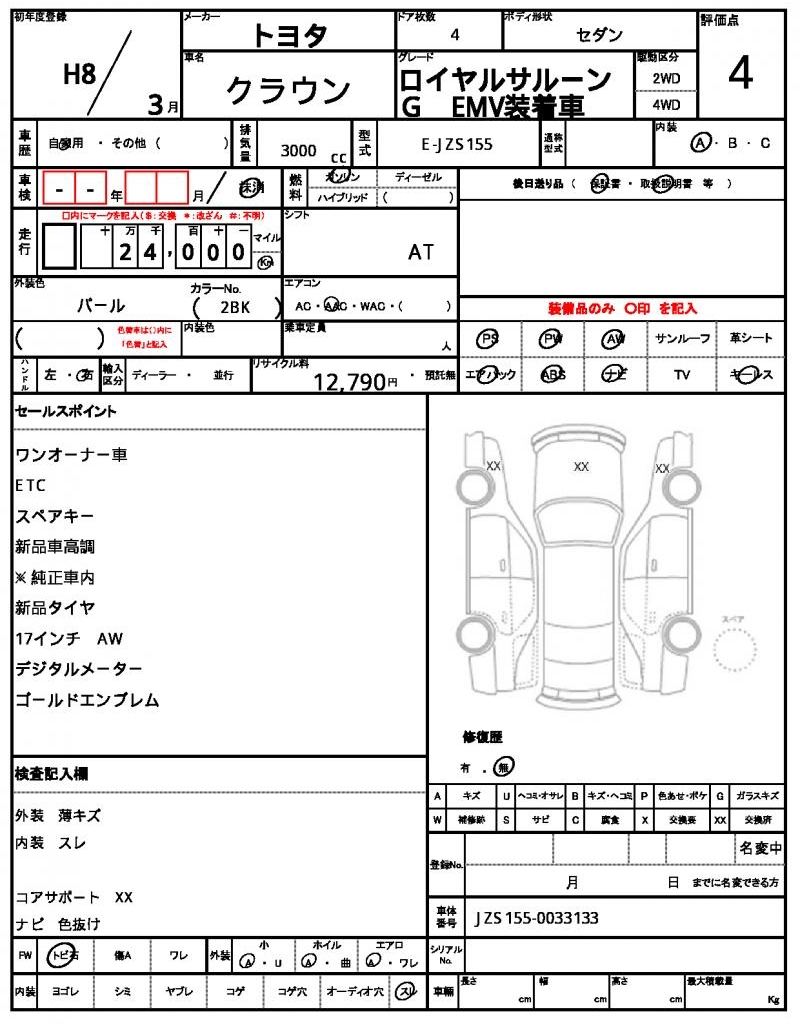 | VIN/Serial No. | JZS155-0033133 |
