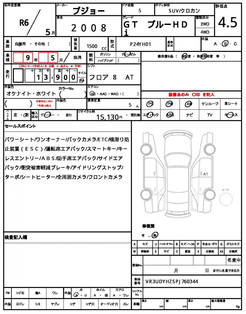 | VIN/Serial No. | VR3UDYHZSPJ760344 |