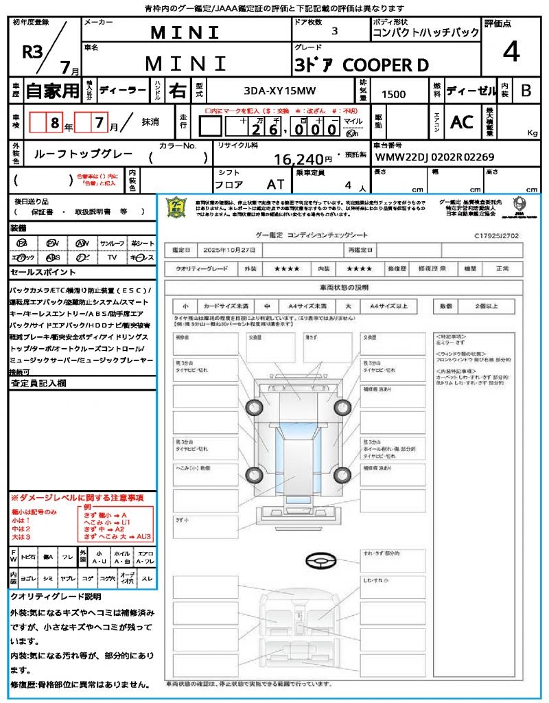 | VIN/Serial No. | WMW22DJ0202R02269 |
