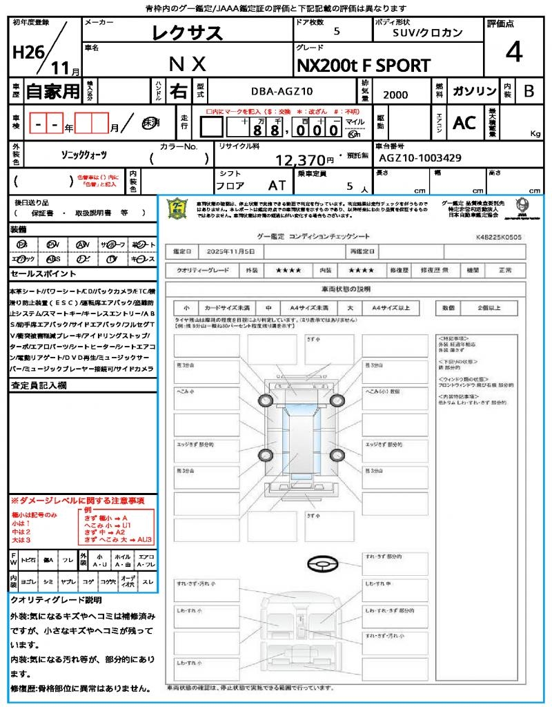 | VIN/Serial No. | AGZ10-1003429 |