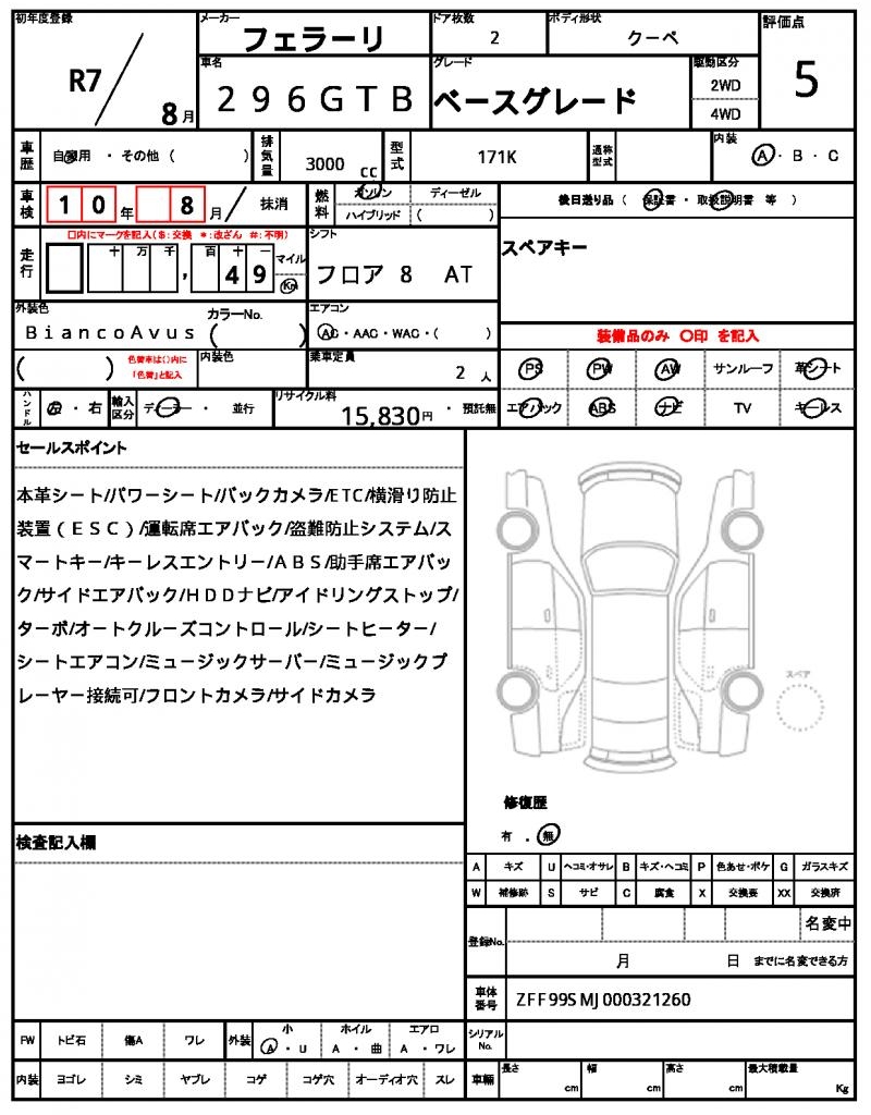 | VIN/Serial No. | ZFF99SMJ000321260 |