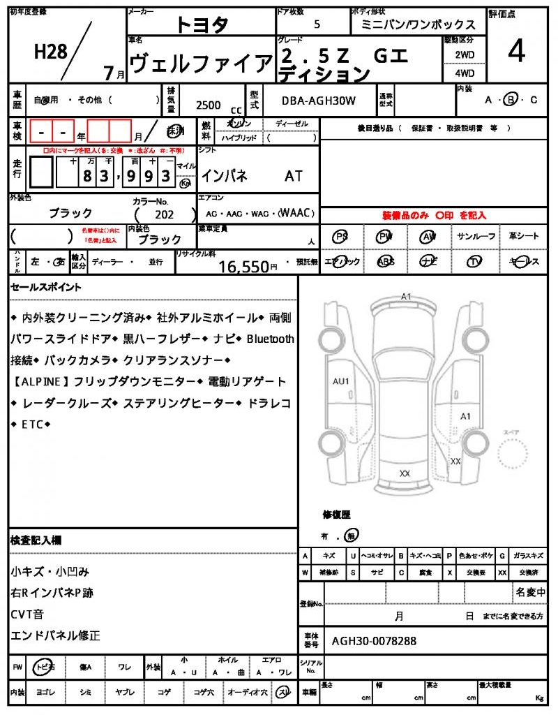 | VIN/Serial No. | AGH30-0078288 |