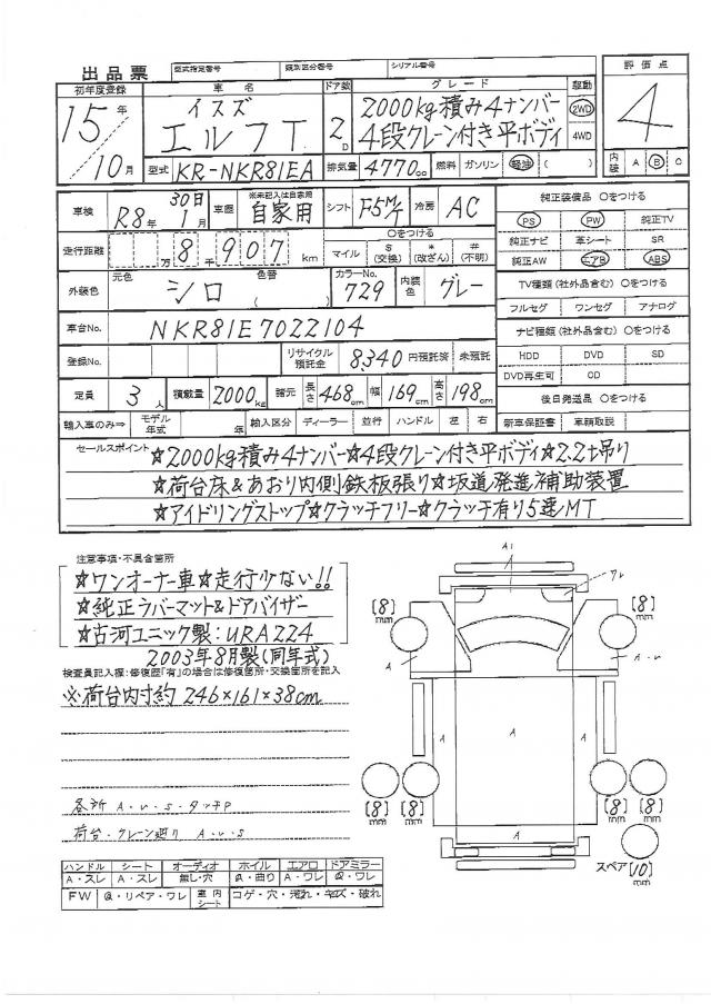 | VIN/Serial No. | NKR81E7022104 |