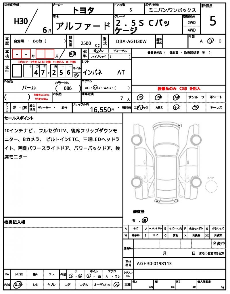 | VIN/Serial No. | AGH30-0198113 |