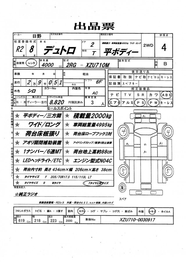 | VIN/Serial No. | XZU710-0030917 |