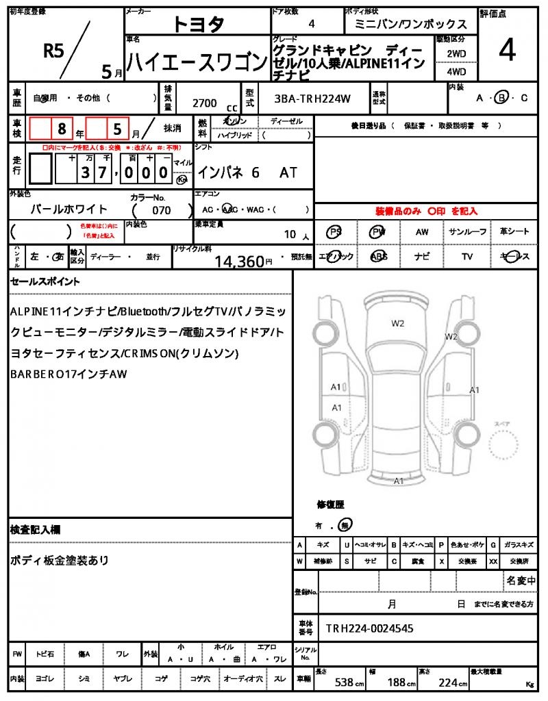 | VIN/Serial No. | TRH224-0024545 |
