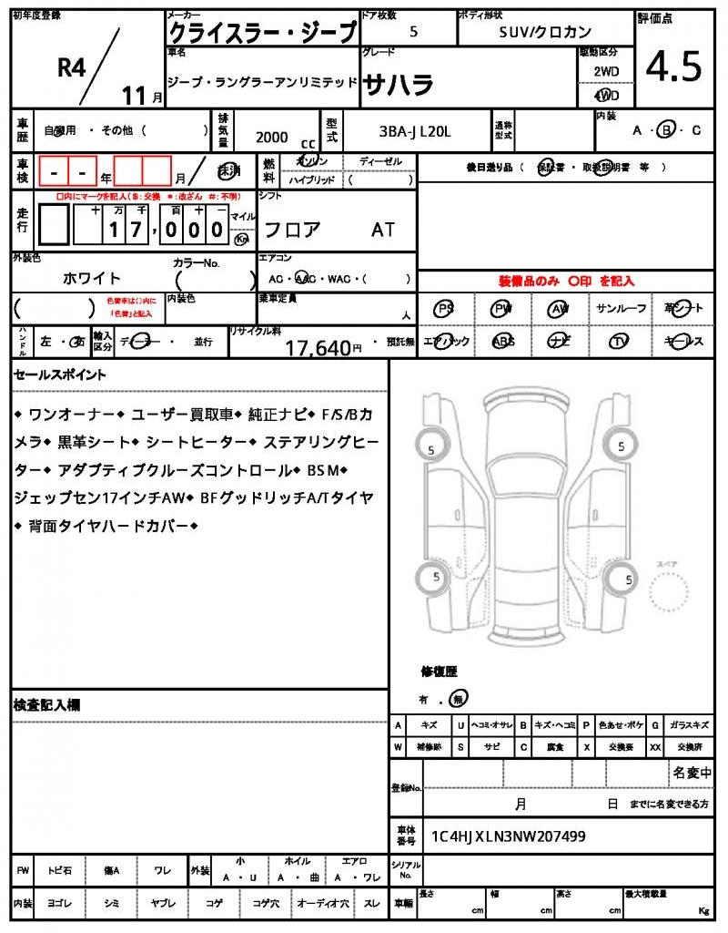 VIN/Serial No. 1C4HJXLN3NW207499