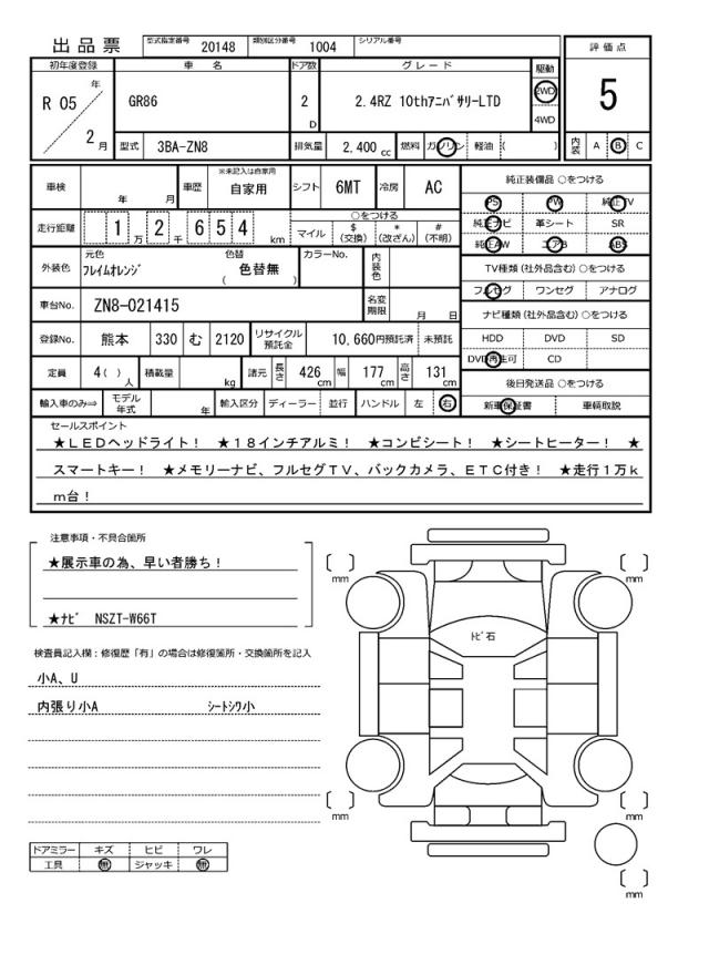 | Model code | 3BA-ZN8 |